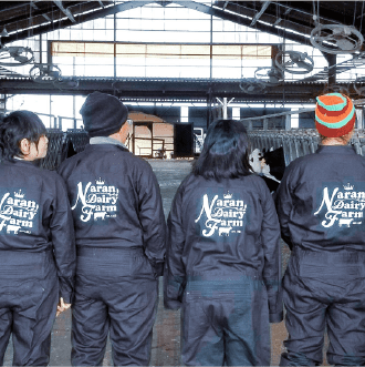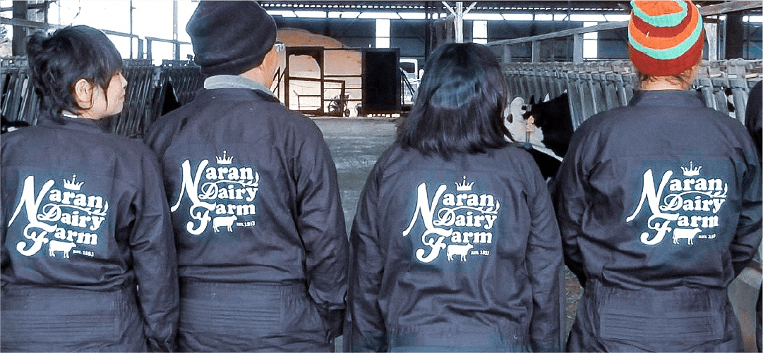 みんなで揃って、ブランドマークが入ったつなぎを着る。それが「一緒に働くチームづくり」に効く、コミュニケーションになるんです。後ろ姿もカッコよく決めましょう。
